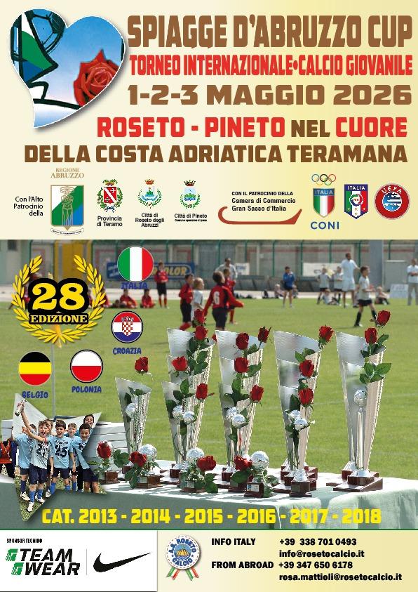 Sarà inoltre un’opportunità per vivere momenti di condivisione anche al di fuori del campo, nelle splendide località di Roseto degli Abruzzi, Pineto, Giulianova e Silvi Marina, dove sport e divertimento si uniranno in un’esperienza indimenticabile.