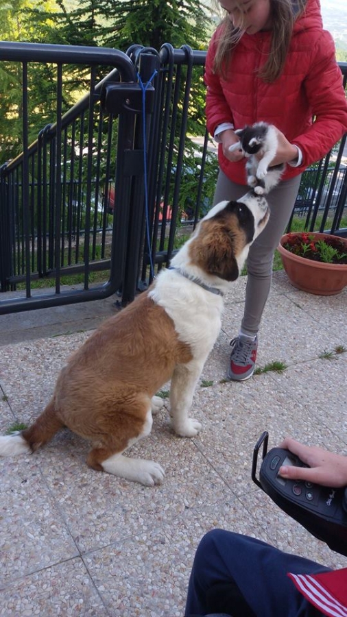 Hora , una splendida femmina di San Bernardo di sei mesi, questa mattina, intorno alle ore 9.00, spaventata dai fuochi d'artificio, e' scappata dalla Casa di riposo "COSMO MARIA DE HORATIIS" di Poggio Sannita.Qualcuno riferisce di averla vista che correva spaventata verso l'uscita del paese. Il Presidente della Cooperativa ,Nicola Di Filippo, che gestisce la casa famiglia , gli operatori , gli anziani ospiti , i familiari degli ospiti , lanciano un accorato appello d'aiuto per ritrovarla al più presto possibile. Aiutiamoli!!