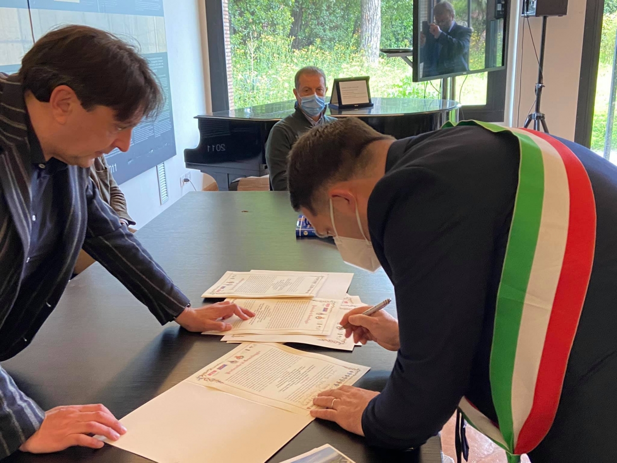 "Nella giornata di ieri, 29 aprile 2021, con una delegazione dell’Amministrazione comunale di Agnone e del Centro Studi Alto Molise, ci siamo recati a Roma presso il Parco Archeologico dell’Appia Antica per firmare il documento di gemellaggio tra il citato parco e i Parchi Letterari e del Paesaggio, nello specifico con il Parco Letterario “F. Jovine”.