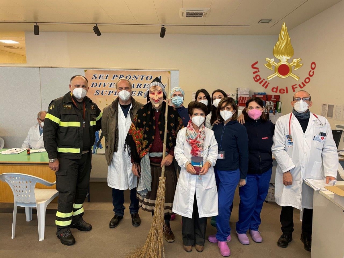 in attesa della vaccinazione l'acclamano a gran voce. La Befana, purtroppo