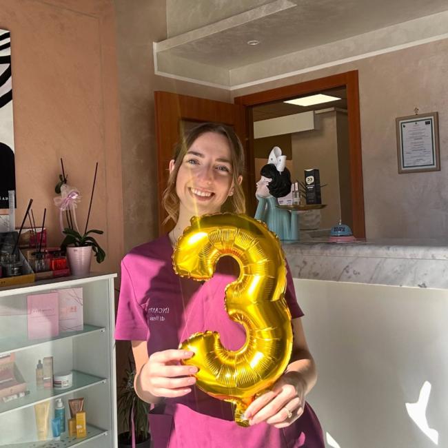 Tre anni fa, spinta da una forte passione per il mondo della bellezza e del benessere, ha aperto giovanissima il suo centro, “Incanto – Atelier del Benessere”, trasformando un sogno in una solida realtà.