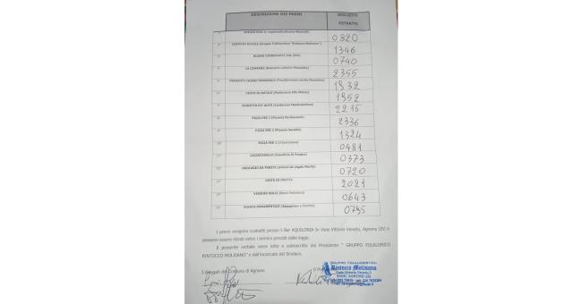 Nella foto sottostante è riportato l’elenco dei numeri estratti e dei premi abbinati.