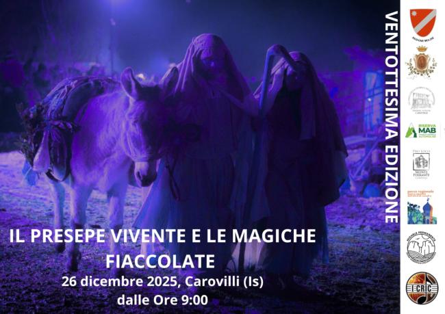 Al termine delle fiaccolate, alle 17.30, si terrà l’inaugurazione ufficiale del Presepe Vivente, con la presenza delle autorità e l’avvio della narrazione che guiderà il pubblico tra le scene del borgo. I figuranti, tutti cittadini di Carovilli, interpretano i loro ruoli con autenticità e dedizione, dando vita a uno spettacolo che da quasi trent’anni rappresenta un patrimonio identitario della comunità.
