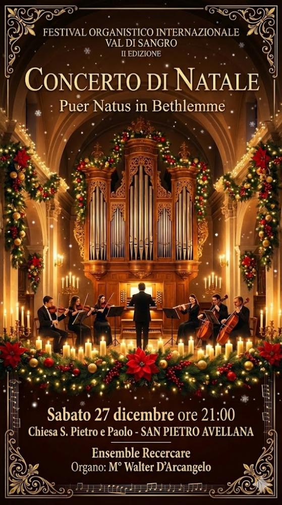 San Pietro Avellana (IS) – La magia del Natale incontra la grande musica organistica nella suggestiva cornice della Chiesa dei S.S. Pietro e Paolo. Sabato 27 dicembre, alle ore 21:00, la II Edizione del Festival Organistico Internazionale Val di Sangro propone un evento imperdibile, capace di fondere arte, spiritualità e tradizione.