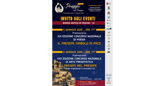 Pesche si prepara a vivere gli ultimi, emozionanti momenti della Manifestazione “I Presepi nel Presepe”, giunta alla sua 22ª edizione, con le cerimonie conclusive in programma il 5 e 6 gennaio, a partire dalle ore 17.00.