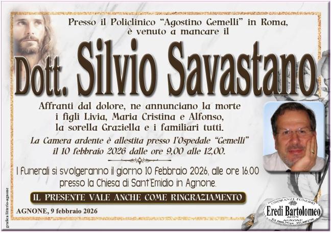 Uomo di grande umanità, rigore morale e dedizione al prossimo, il Dott. Silvio Savastano resterà esempio luminoso di professionalità, passione e servizio.