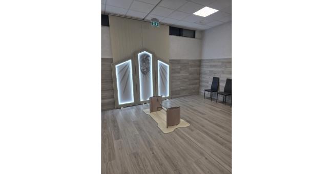 La nuova sala permette ora di accogliere due salme in contemporanea, ciascuna in ambienti separati e riservati, assicurando alle famiglie privacy e tranquillità durante l’ultimo commiato. Ogni sala è completata da zone di attesa eleganti, servizi igienici e una stanza ristoro, per offrire conforto ai visitatori.