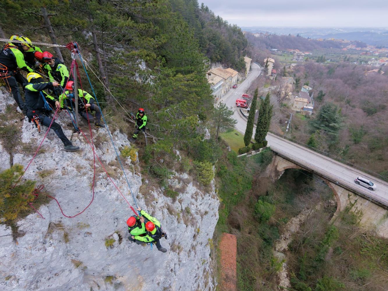 In una parete rocciosa in prossimità del Sacrario militare di Bocca di Valle nel comune di Guardiagrele, il 20 febbraio scorso, i Vigili del fuoco qualificati in tecniche avanzate di soccorso di derivazione alpinistica del nucleo SAF provenienti dai quattro Comandi della regione, hanno effettuato un'attività addestrativa con simulazione di recupero in parete di un infortunato.