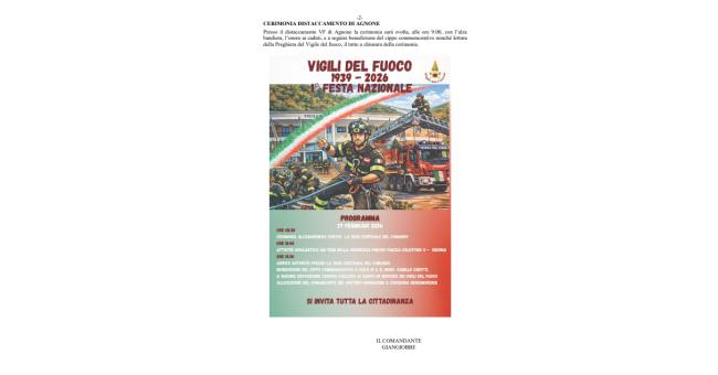 . Il giorno 27 febbraio 2026 si celebrerà, per la prima volta, la Festa commemorativa dell’istituzione del Corpo Nazionale dei Vigili del Fuoco, ricorrenza ufficialmente stabilita per il 27 febbraio di ogni anno. La celebrazione, istituita per ricordare la nascita del Corpo Nazionale e valorizzarne la storia, l’impegno e il servizio reso quotidianamente alla collettività, sarà osservata in tutte le Direzioni Regionali, nei Comandi d’Italia e nelle Sedi Centrali. L’evento, dal tema celebrativo “Lì dove serve”, rappresenterà un momento di particolare significato per tutto il personale in servizio ed in quiescenza, oltre che per la cittadinanza che da sempre riconosce nei Vigili del Fuoco un presidio fondamentale di sicurezza, professionalità e solidarietà. Il programma della giornata includerà, oltre ai momenti istituzionali nei quali saranno ricordate le vittime del dovere del CNVVF, anche attività dimostrative e iniziative aperte al pubblico, con l’obiettivo di condividere con la comunità il valore e la missione del Corpo Nazionale.