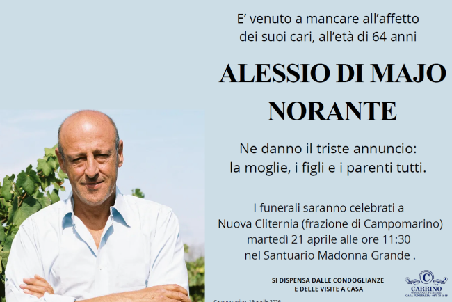 È morto Alessio Di Majo Norante, all’età di 64 anni, lasciando un profondo vuoto nella sua famiglia e in tutta la comunità .
